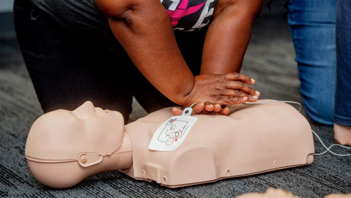Hands Only CPR focuses on chest compressions without mouth-to-mouth breathing. It is designed to be easy to remember and effective under pressure. Instructors walk participants through what to look for, when to act, and how to keep compressions steady until help arrives.